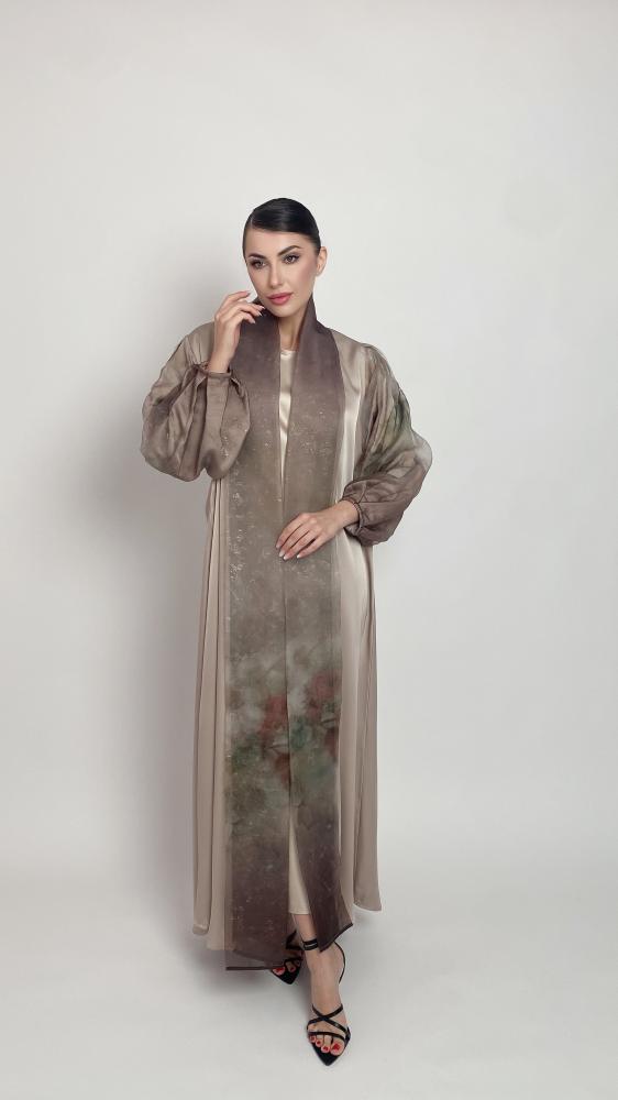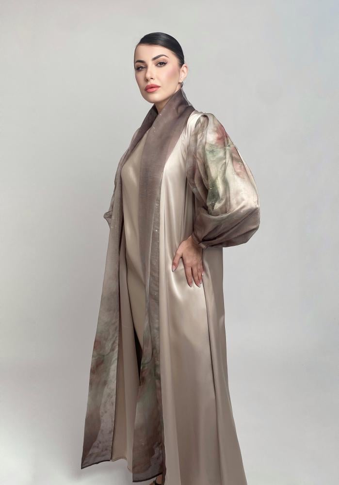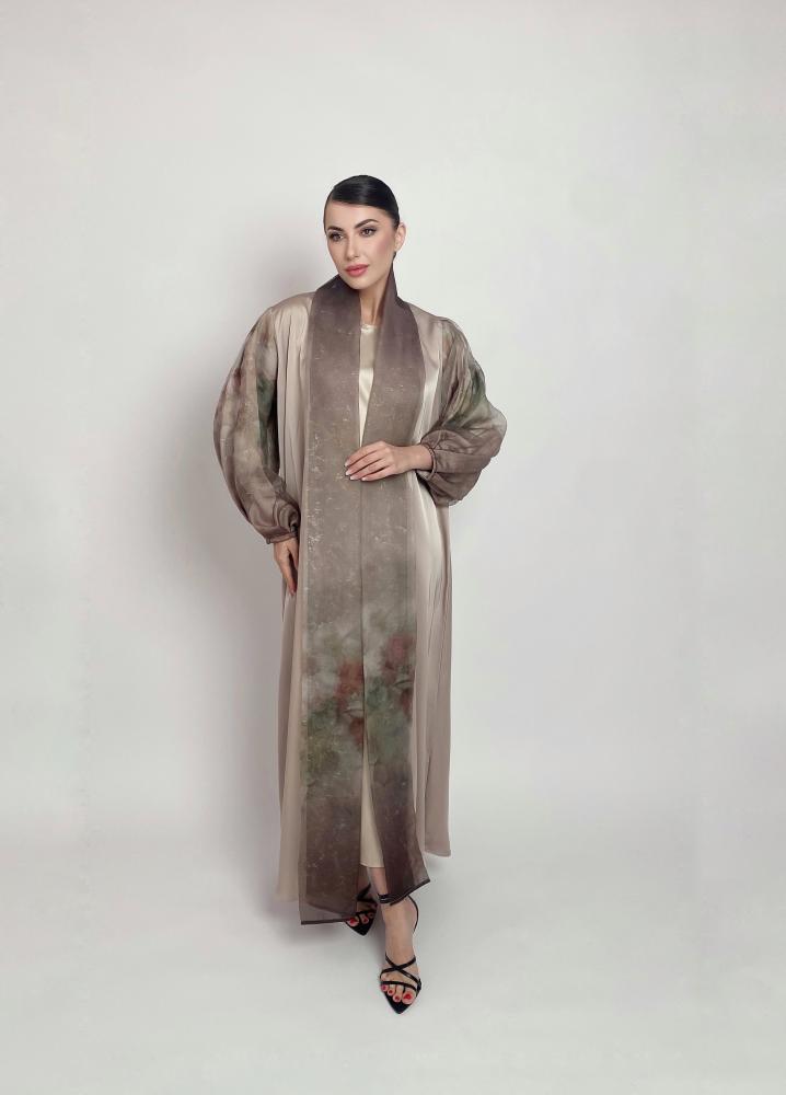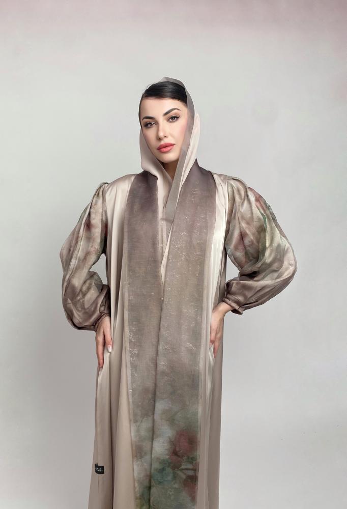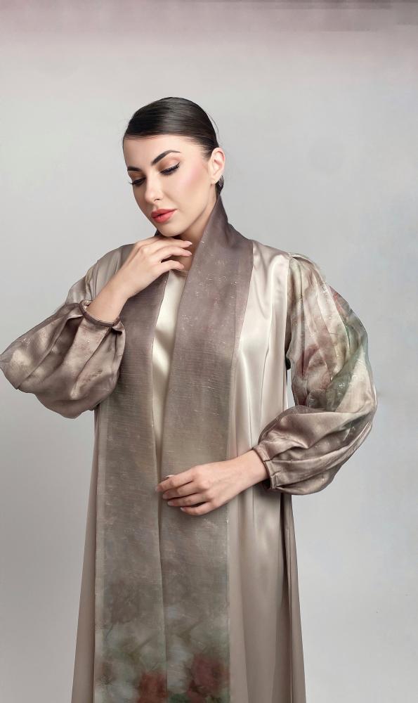 عبايه عملية وأنيقة مصنوعة من حرير كريب ياباني درجة عاليه بتدخيلات رش اورجنزا