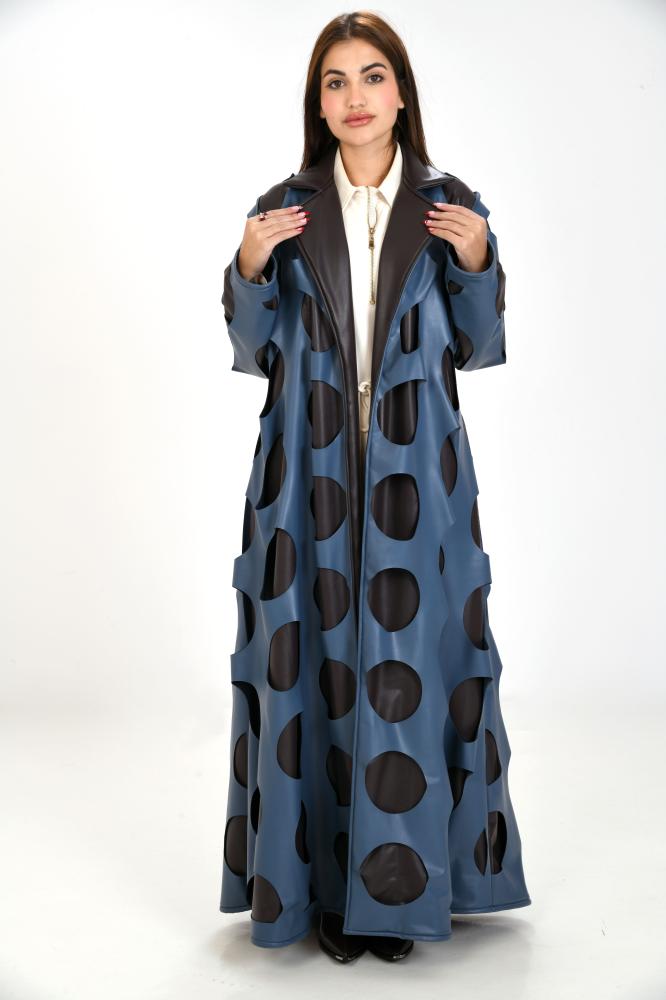 القماش جلد مبطن بجلد مخرم. لون الرمادي والسماوي